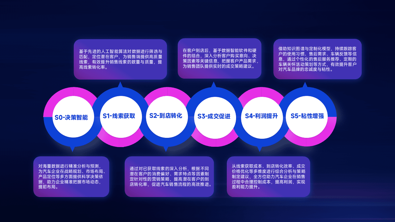 通过拓宽潜在客户来源、、优化线索分配并提高到店转化率,,,以增强销售效率。。同时,,,,利用线索数据不断优化分析模型,,,,有效提升转化率,,扩大营销影响力。。